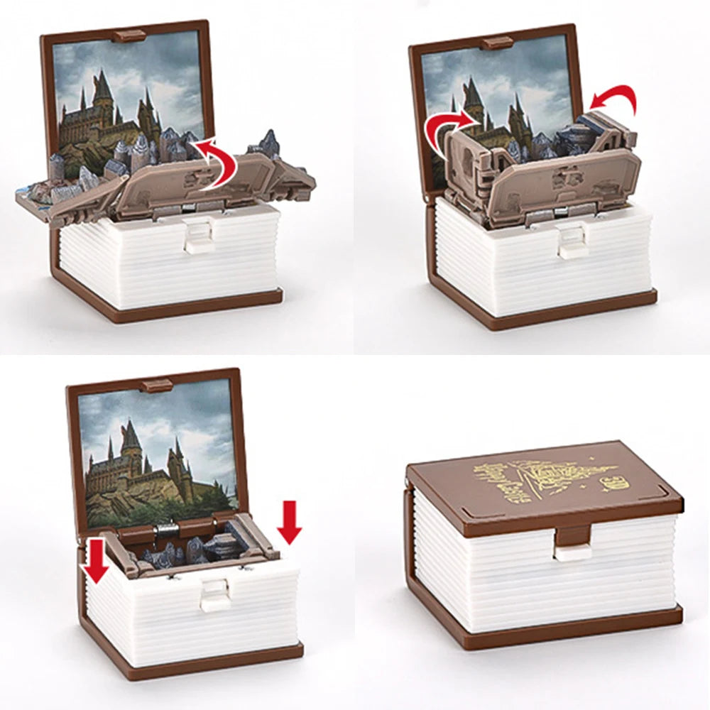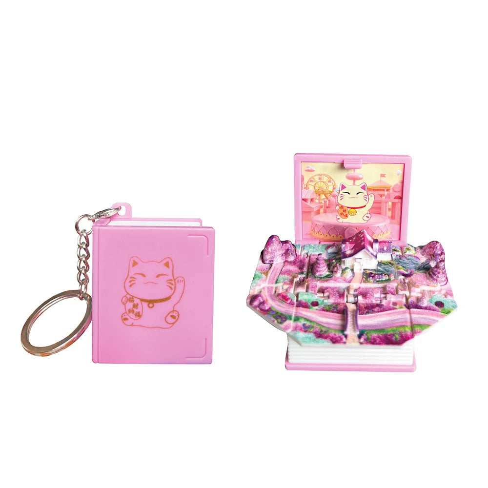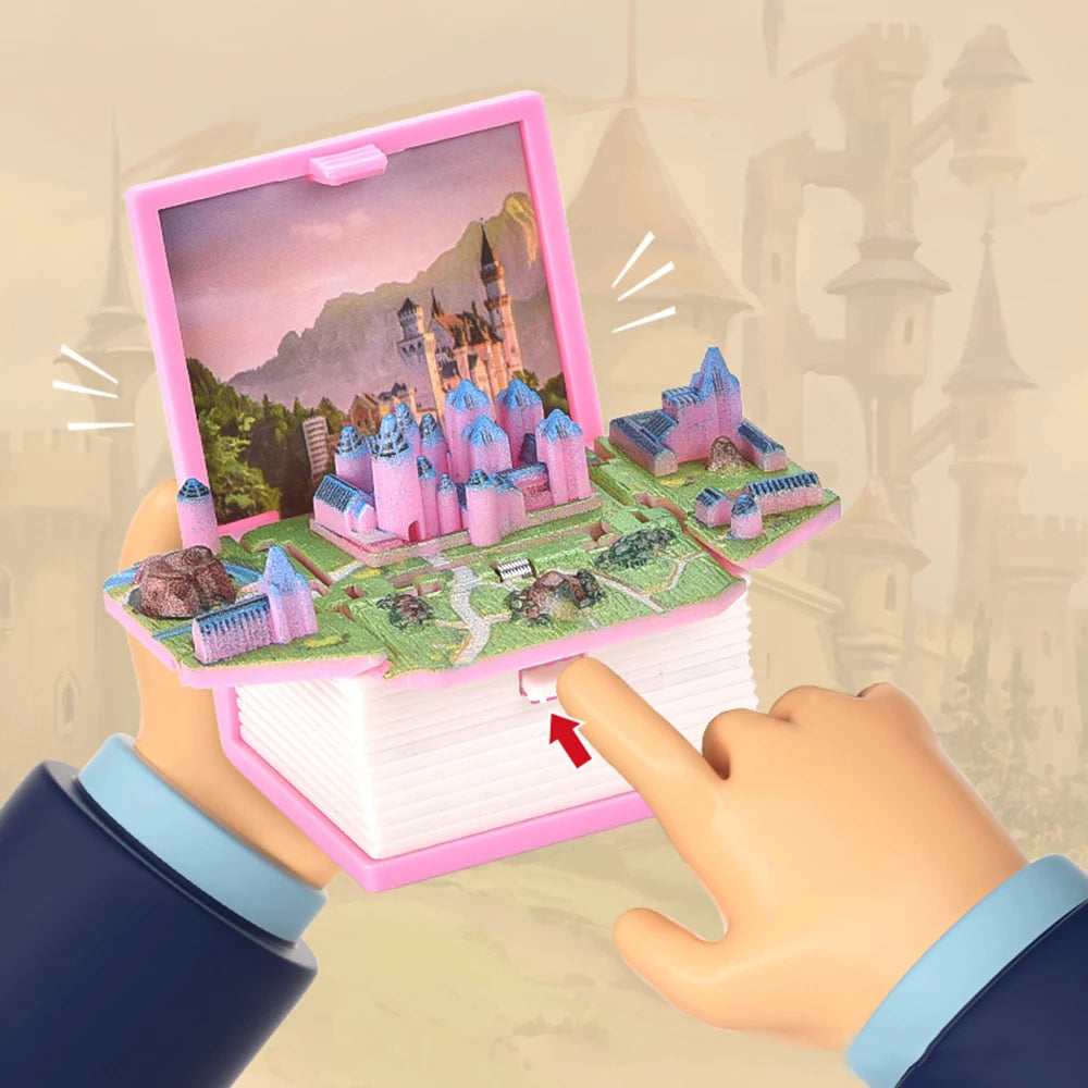 3D Mini Fold Book Keychain Children Kids Toy Birthday Gift Anxiety Stress Relief Dinosaur Castle Keyring Mini Key Chains