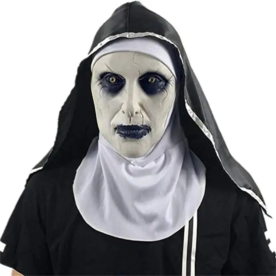 Horror Nun Latex Mask with Head Scarf Cosplay Costume Headgear Halloween Fancy Dress Party Carnival Scary Ghost Nun Mask