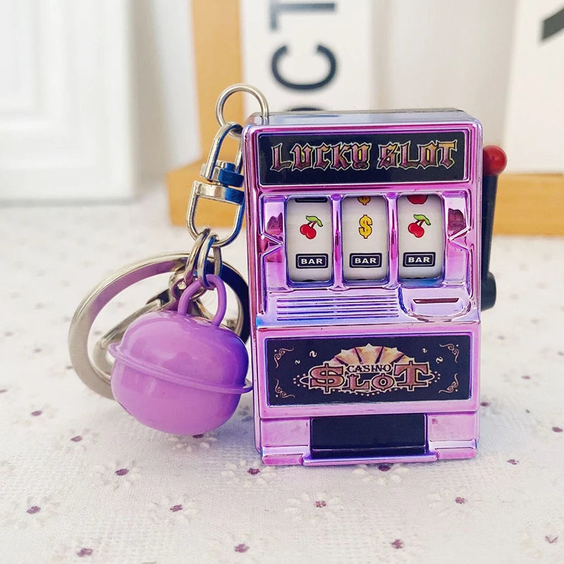 Mini Slot Machine Toy Keychain Creatives Interesting Car Keyring Game Keychain Lucky Jackpot Stress Reliever for Kids Adult Gift