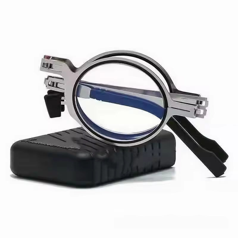 Portable Folding Reading Glasses for Men Metal round Square anti Blue Light Eyeglasses Men Presbyopia Gafas with Diopters Plus