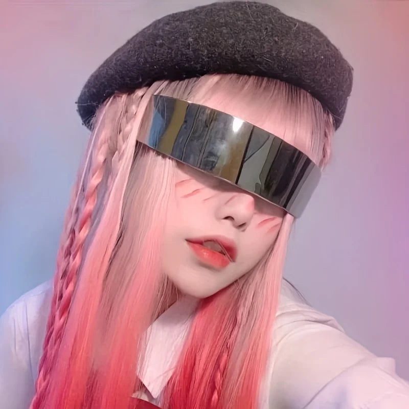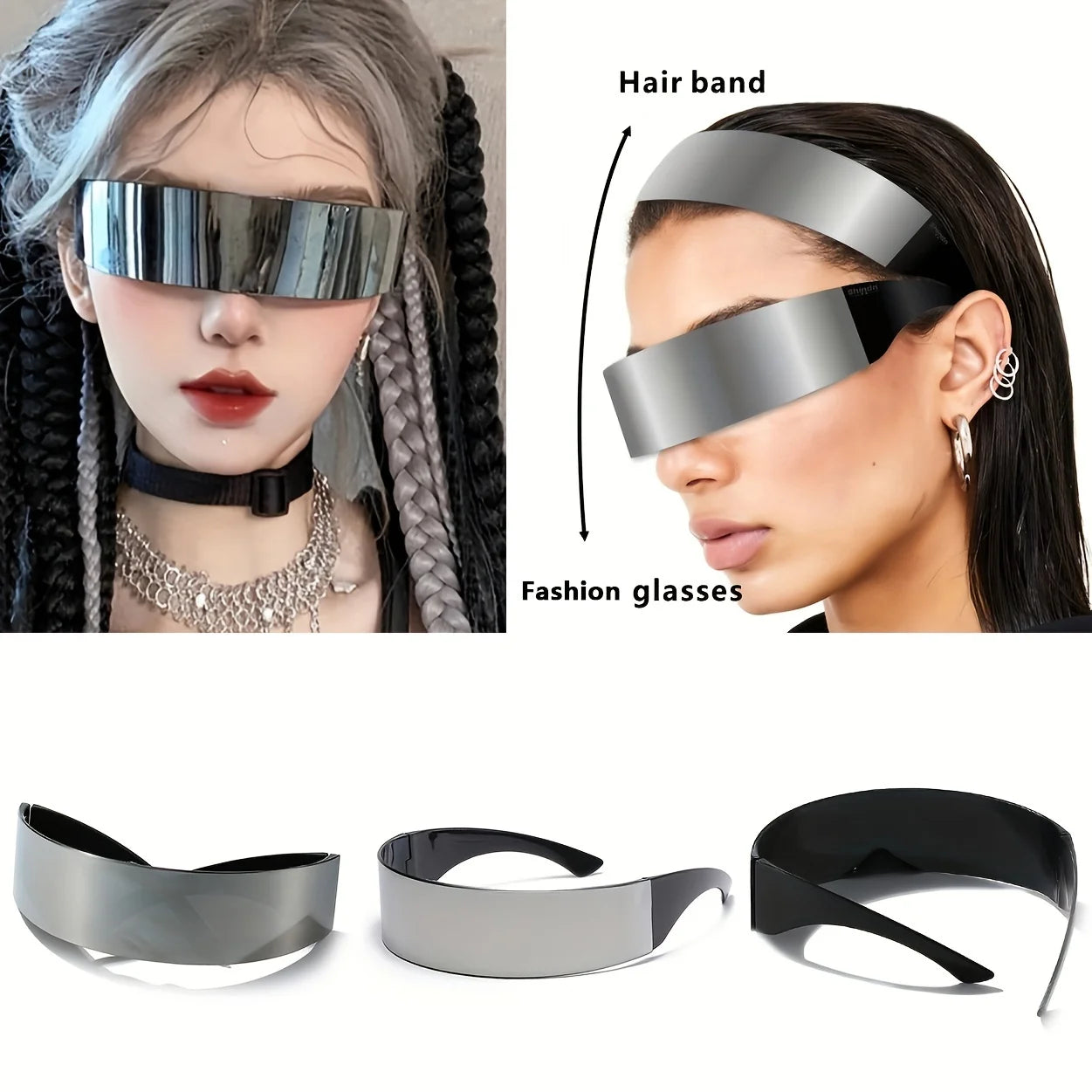Y2K Rimless Sunglasses for Women Men Solid Color Futuristic Glasses Cyberpunk Wide Temple Eyewear UV400